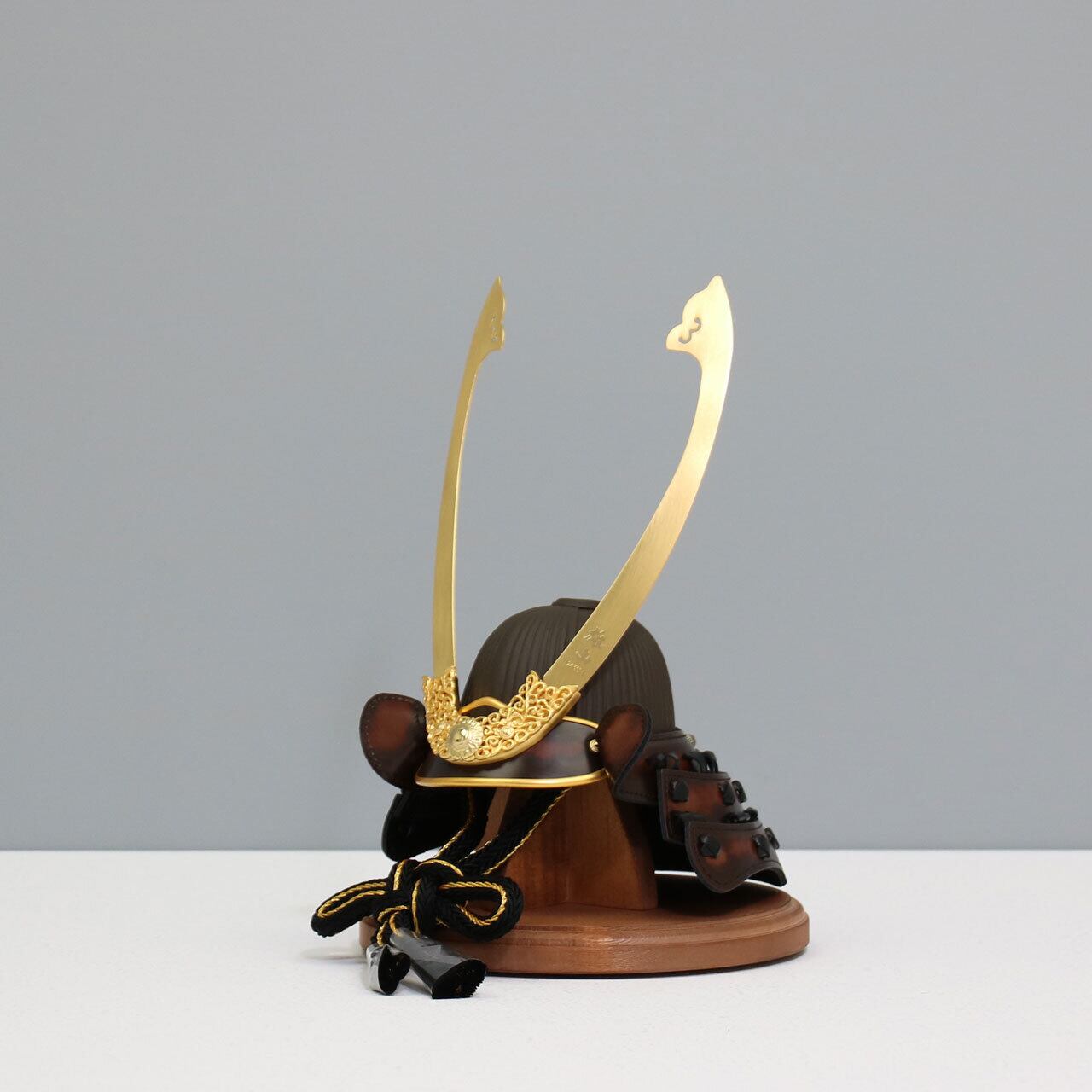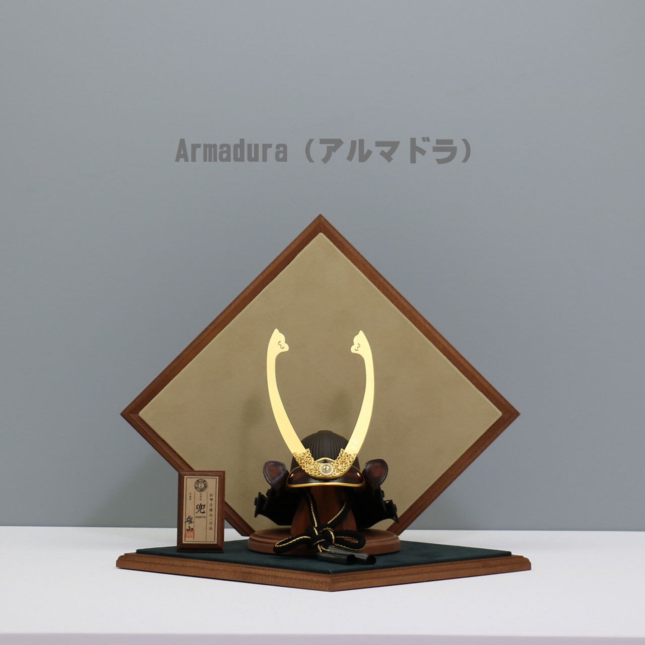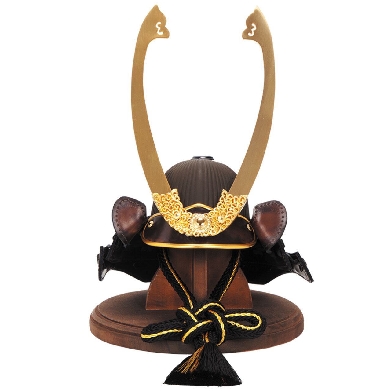 鈴甲子雄山 【Armadura 呂武 7号】 兜飾り 平台飾り 五月人形|木製|茶革|和モダン|コンパクト