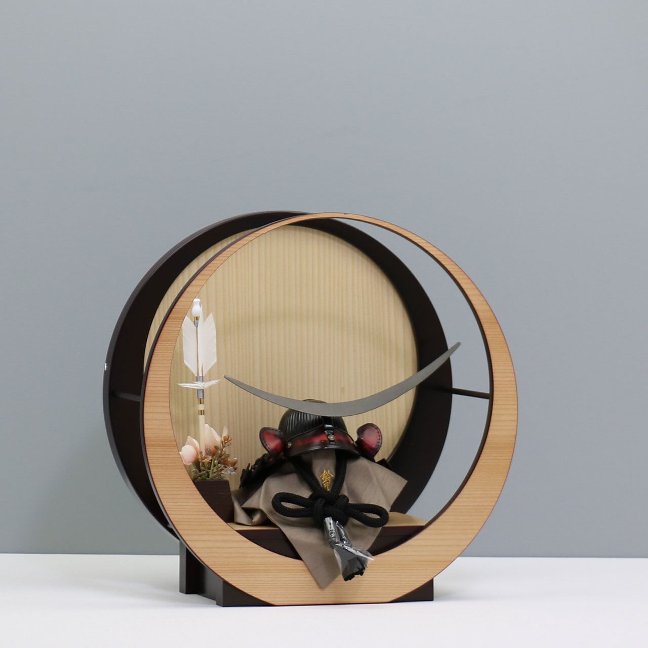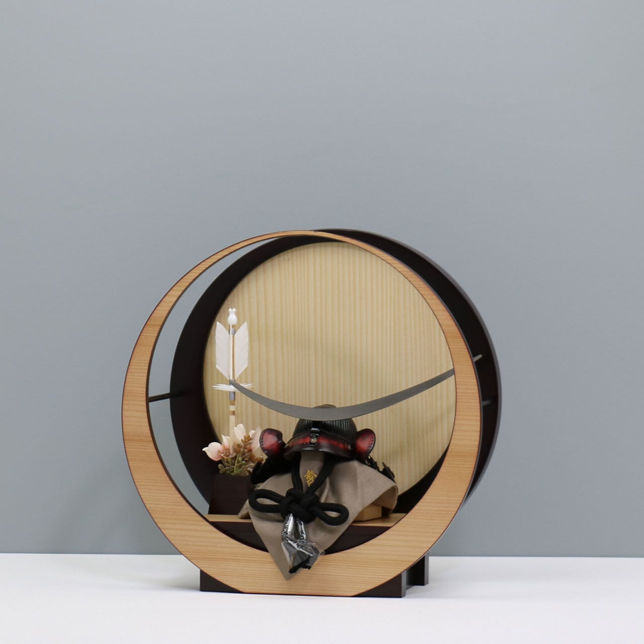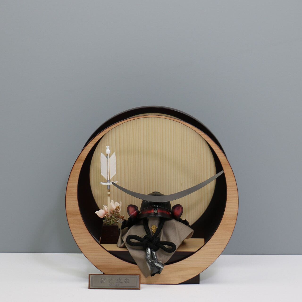 鈴甲子雄山 【Armadura 伊達政宗】 兜飾り 円形飾り 五月人形|木製|茶革|和モダン|コンパクト