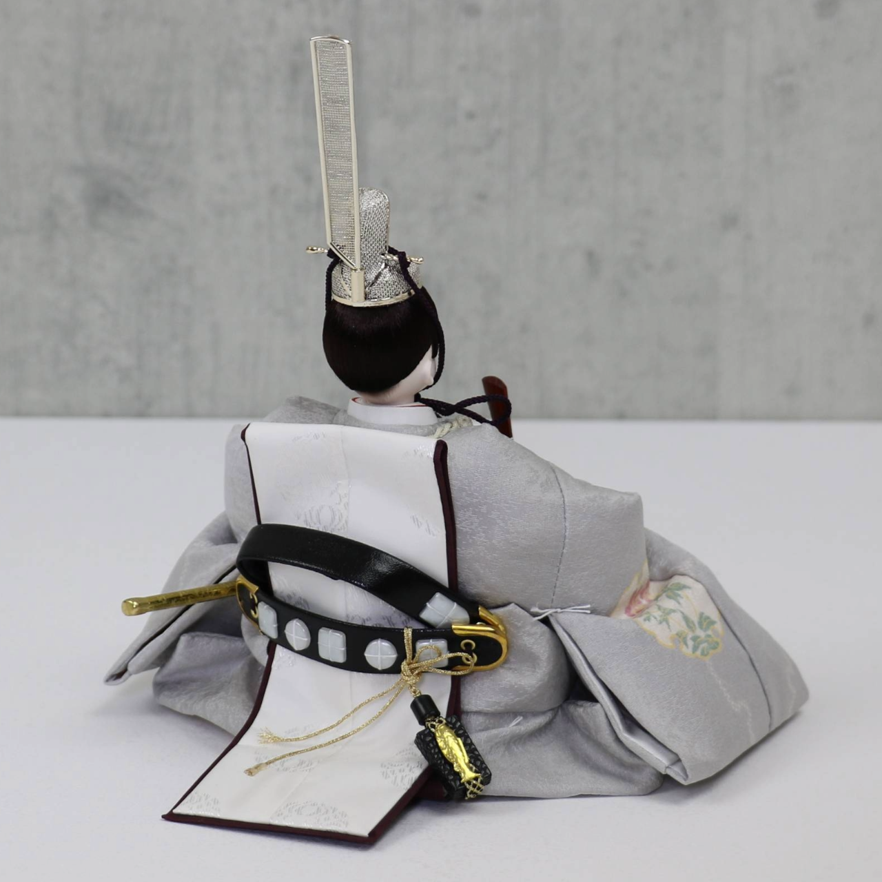丸型親王台(白木)の上に並ぶお人形は、端正でありながら華やかな佇まいを引き立てます。