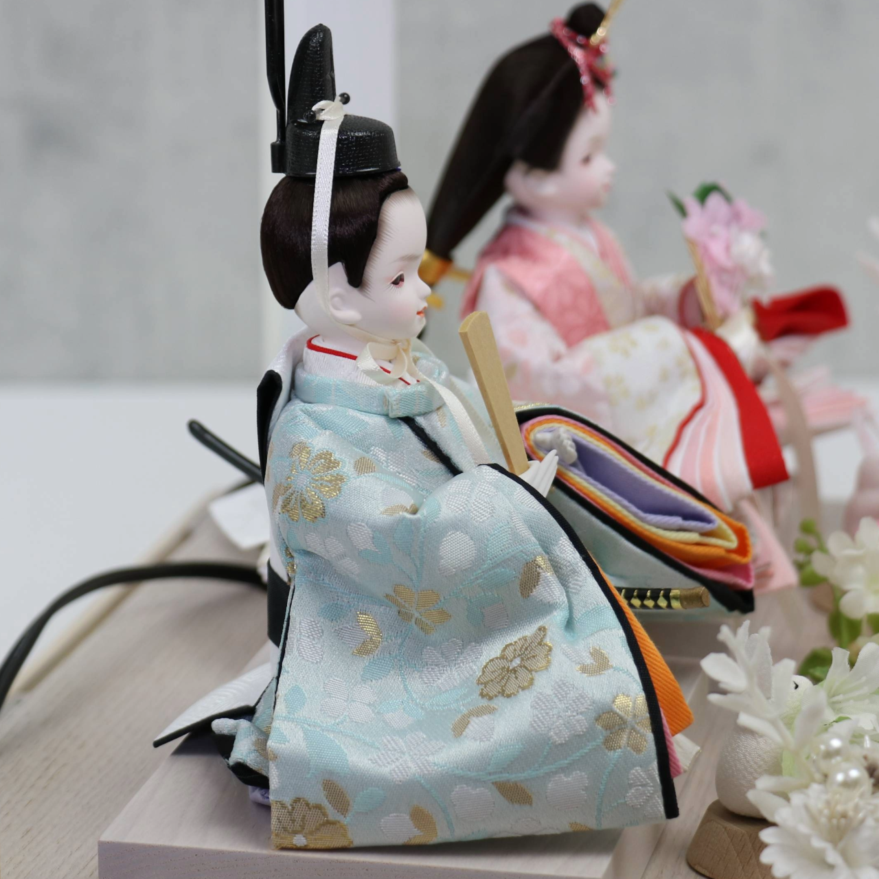「現代のブライダル雛人形」をコンセプトに生まれたデザイナーズ雛人形で、上品な彩りと可愛らしさを兼ね備えています。