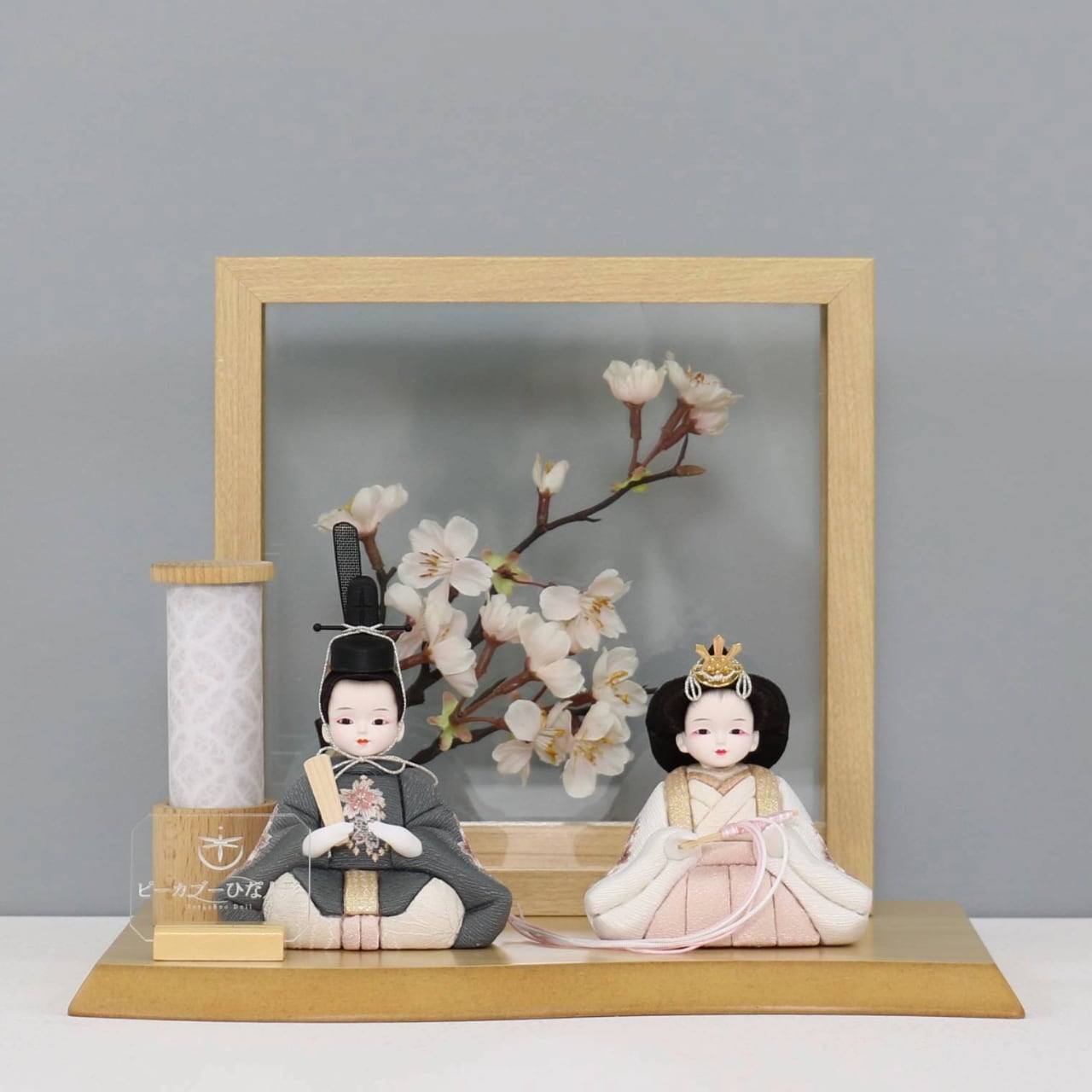 背景の屏風には桜の枝をデザインしたクリアフレームを用い、リアルな立体感のある桜の花が飾りを引き立てています。