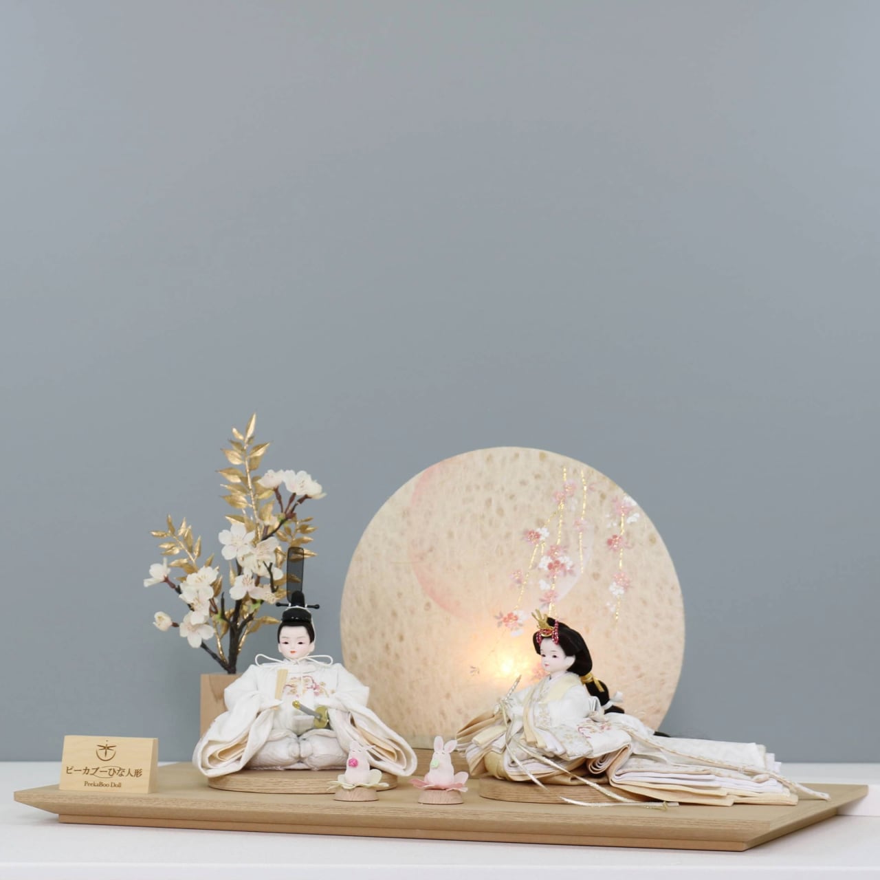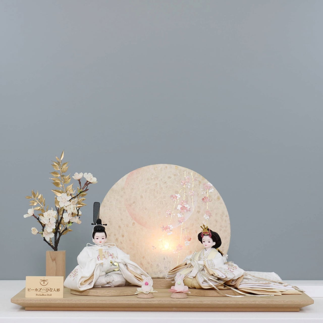 ピーカブーひな人形 ベルズキッスシリーズ 新王飾り 【平安春の舞 月しずく】 ひな人形|雛人形|桜|丸型照明|和モダン