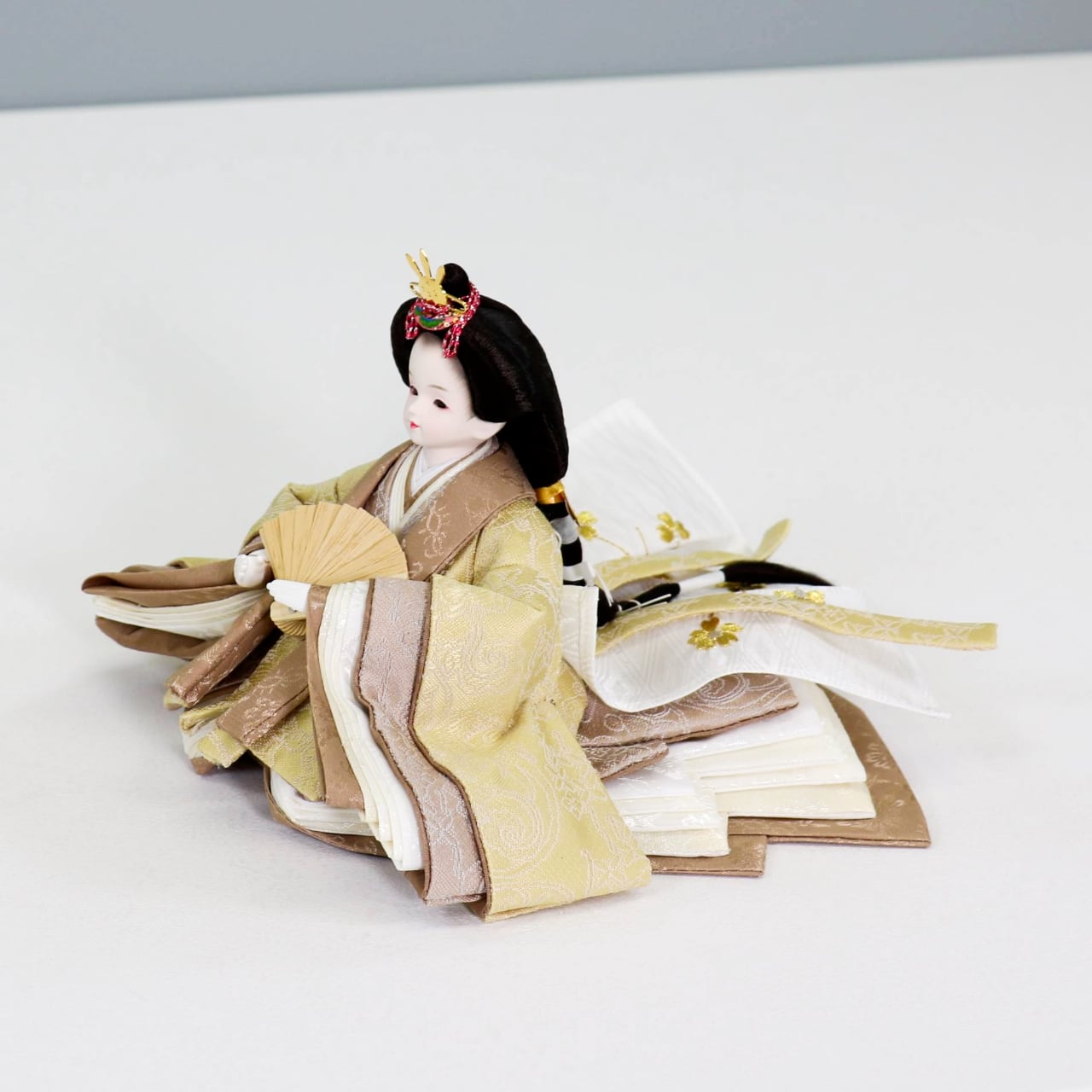 お殿様は淡いベージュの衣装に金糸の文様があしらわれ、落ち着いた印象を与えます。