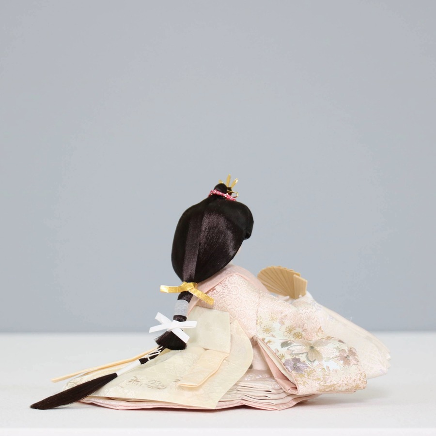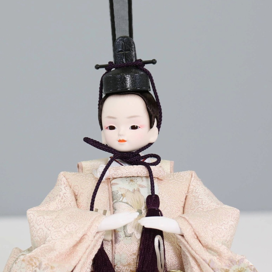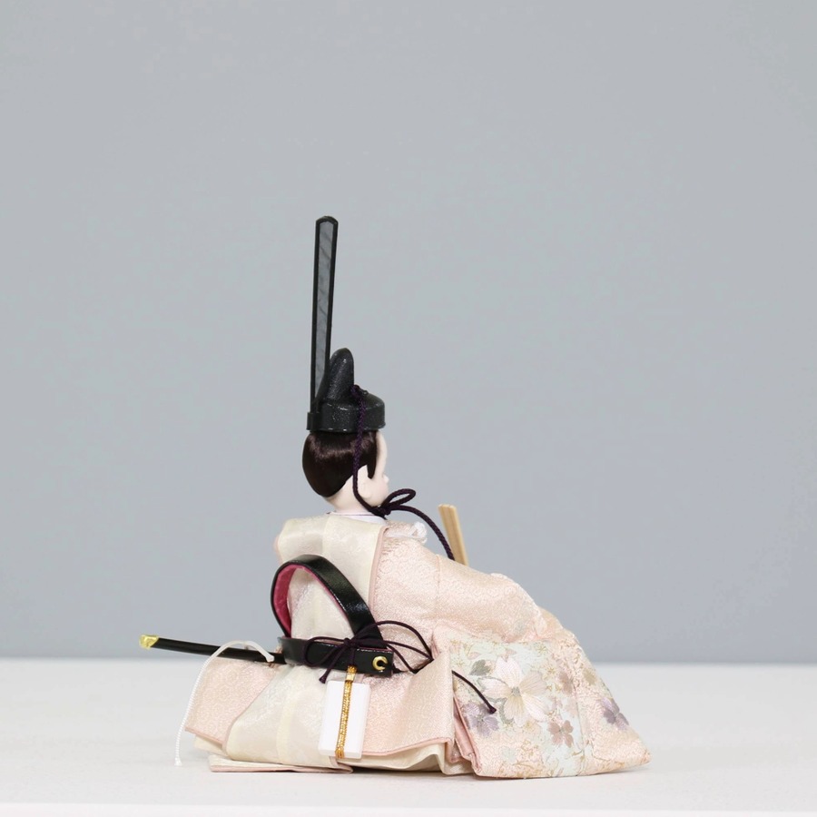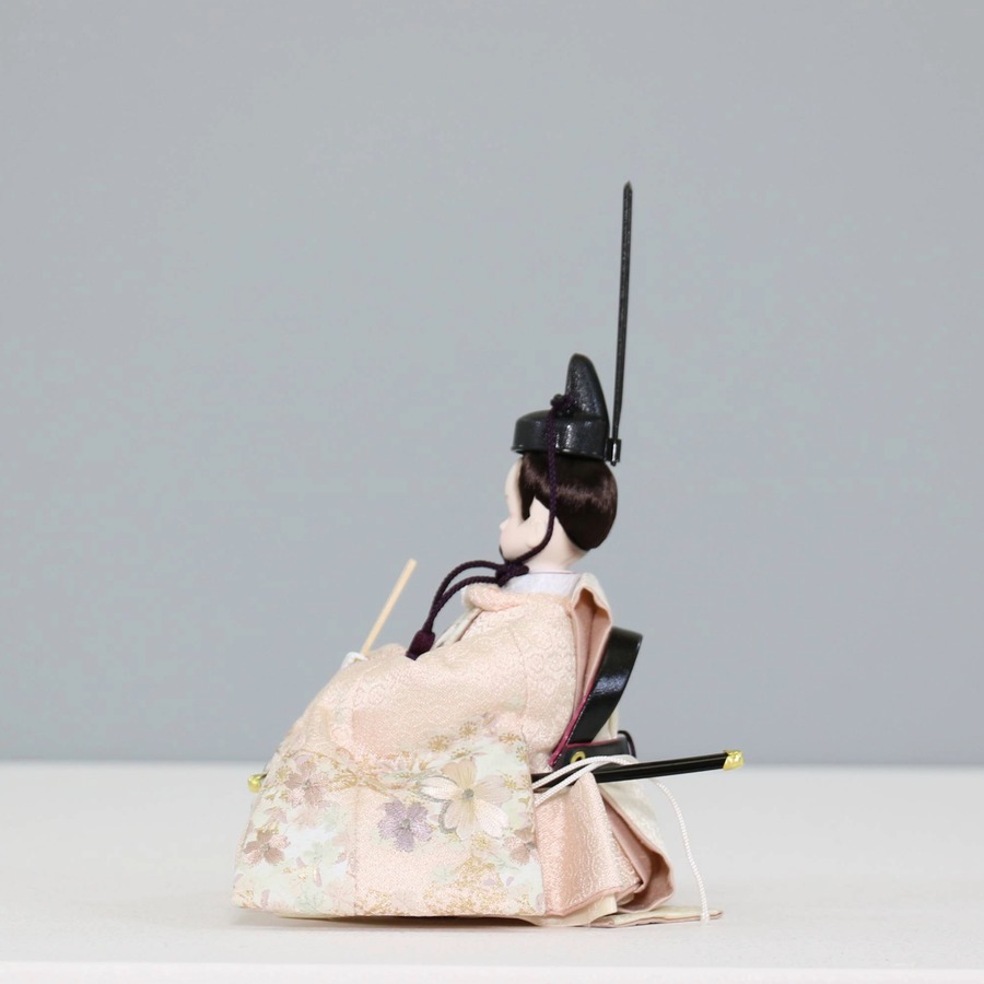 お殿様は淡いベージュの衣装に金糸を織り込み、落ち着いた色調で仕上げられています。お姫様はピンクを基調とした衣装で、全体に明るく優しい印象を与えます。
