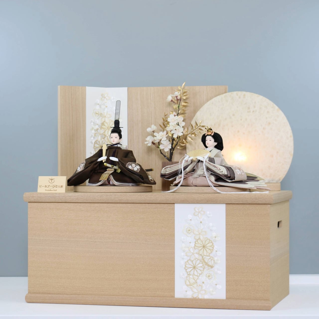 ピーカブーひな人形 ベーシックシリーズ 収納飾り 【結月 みなみ刺繍 まりあそび】 ひな人形|雛人形|桜|丸型照明|和モダン