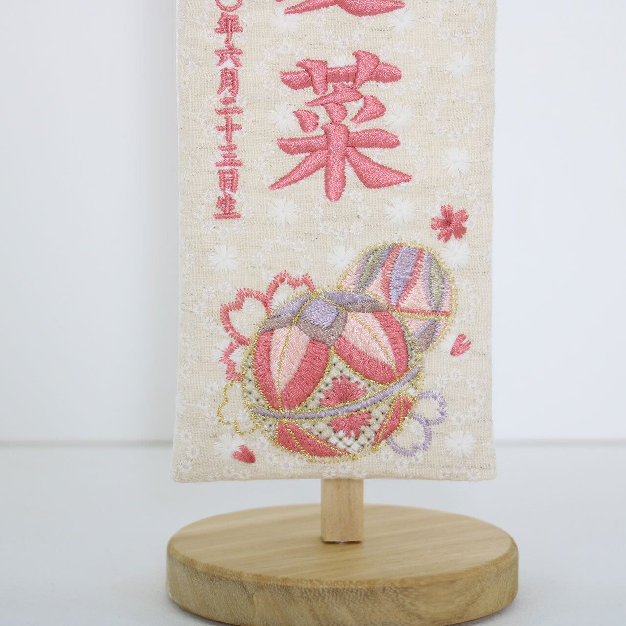 お名前旗 【ゆい ピンク刺繍 特小サイズ】 花柄|刺繍|女の子|ひな祭り|お名前入れ