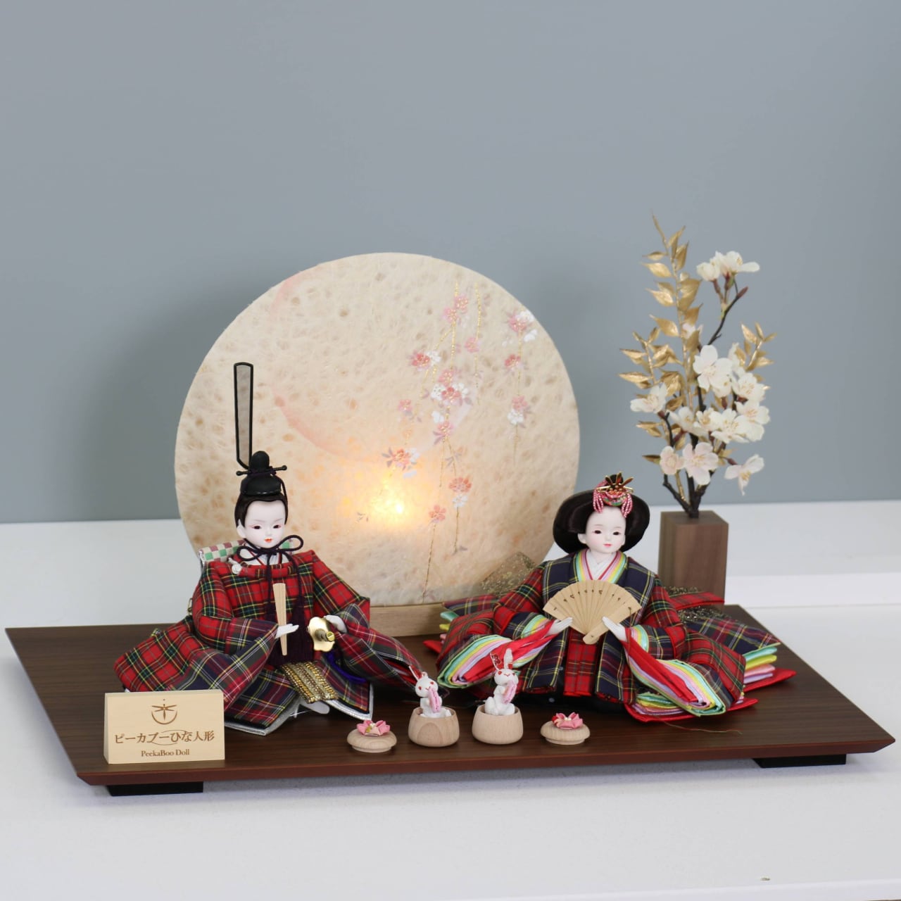 ピーカブーひな人形 ベルズキッスシリーズ 新王飾り 【タータンチェック】 ひな人形|雛人形|桜|丸型照明|和モダン