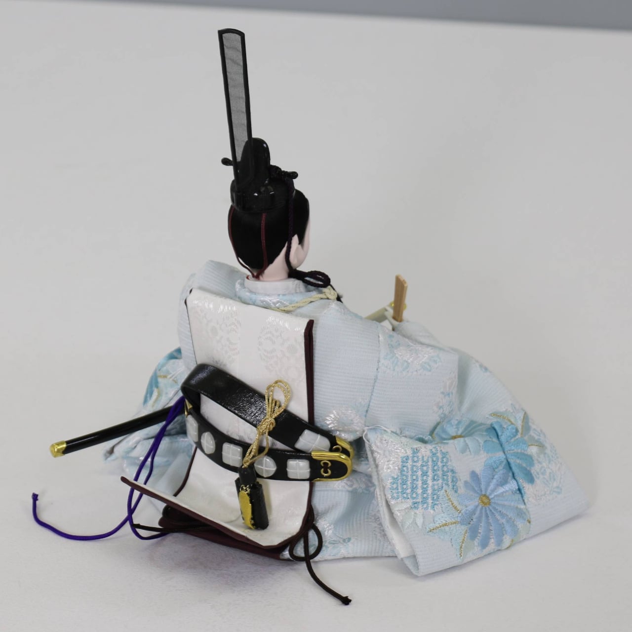 お殿様・お姫様は丸型の白木親王台に座し、淡い色調でまとめられた衣装が特徴です。
