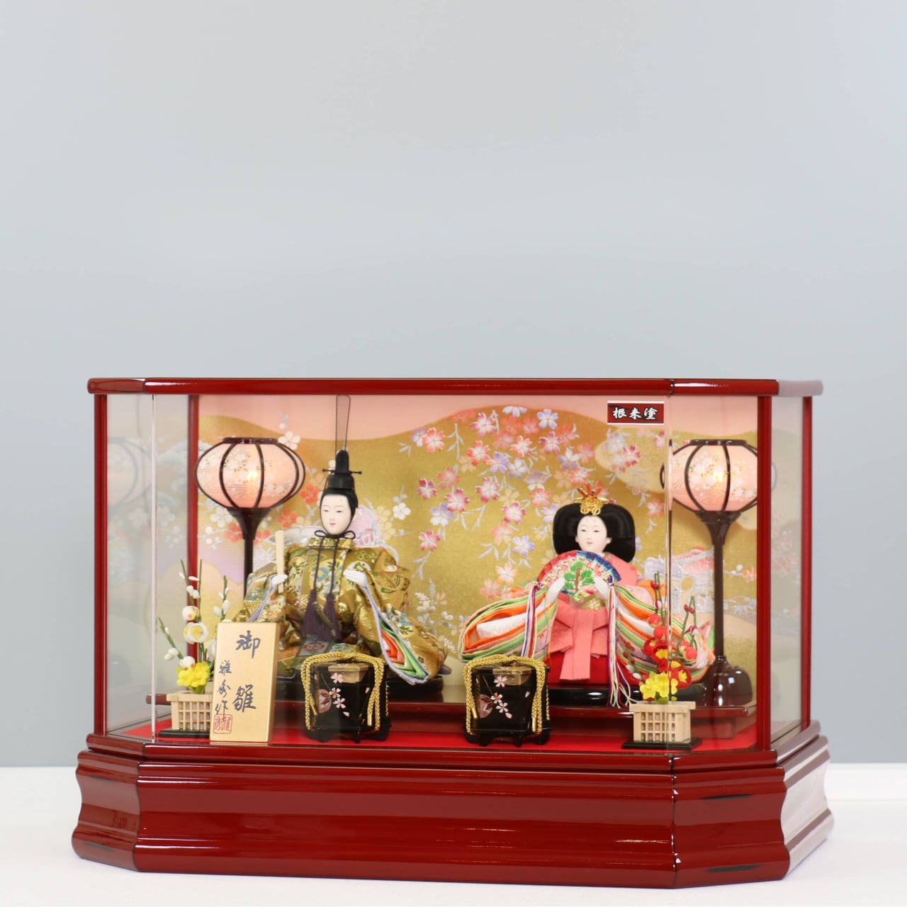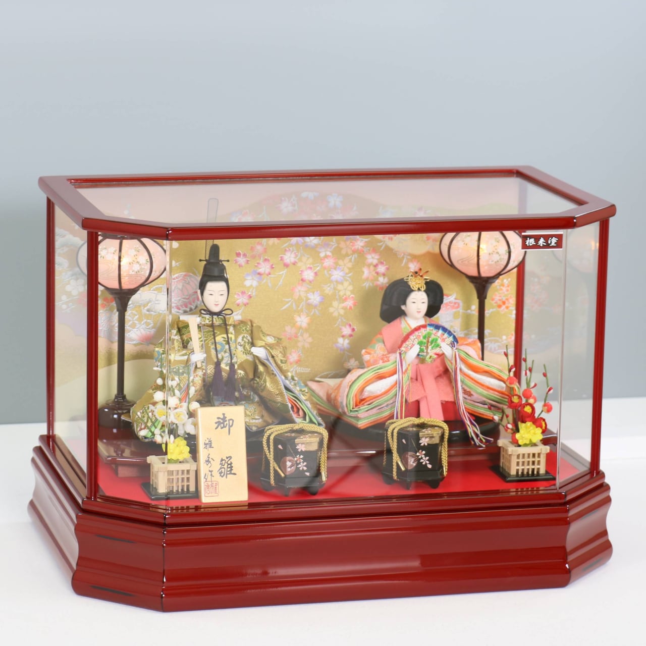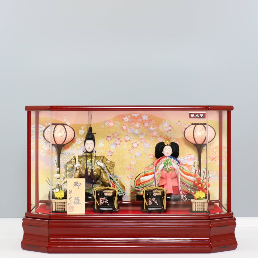 ピーカブーひな人形 ベーシックシリーズ アクリル×ガラスケース飾り 【朱音 根来塗り】 ひな人形|雛人形|桜|ボンボリ照明|和モダン