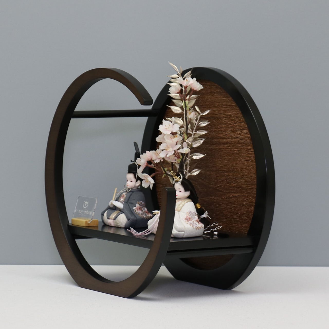 ピーカブーひな人形 ベルズキッスシリーズ 新王飾り 【地桜紋刺繍】 ひな人形|木製ドームスタイル|木目込人形|和モダン