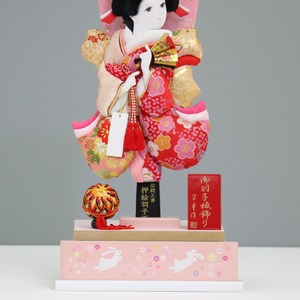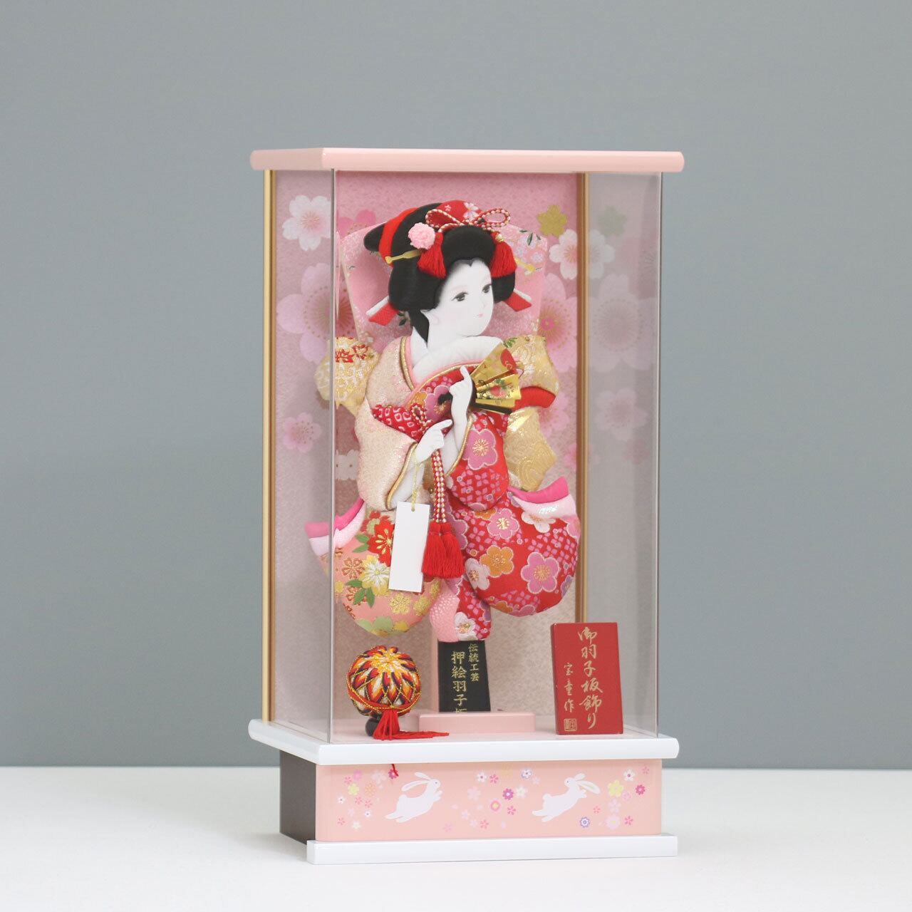 ケースはピンクとホワイトの塗装を施したアクリル製で、透明感が高く羽子板を一層引き立てます。