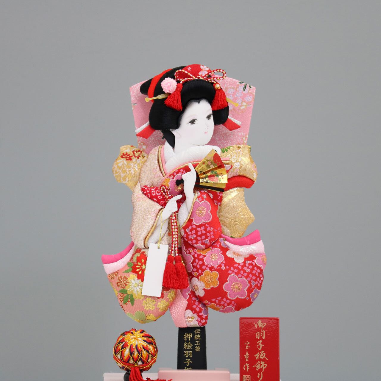 振袖羽子板にはお花柄の細やかなデザインが施され、可愛らしさの中に上品さを兼ね備えています。