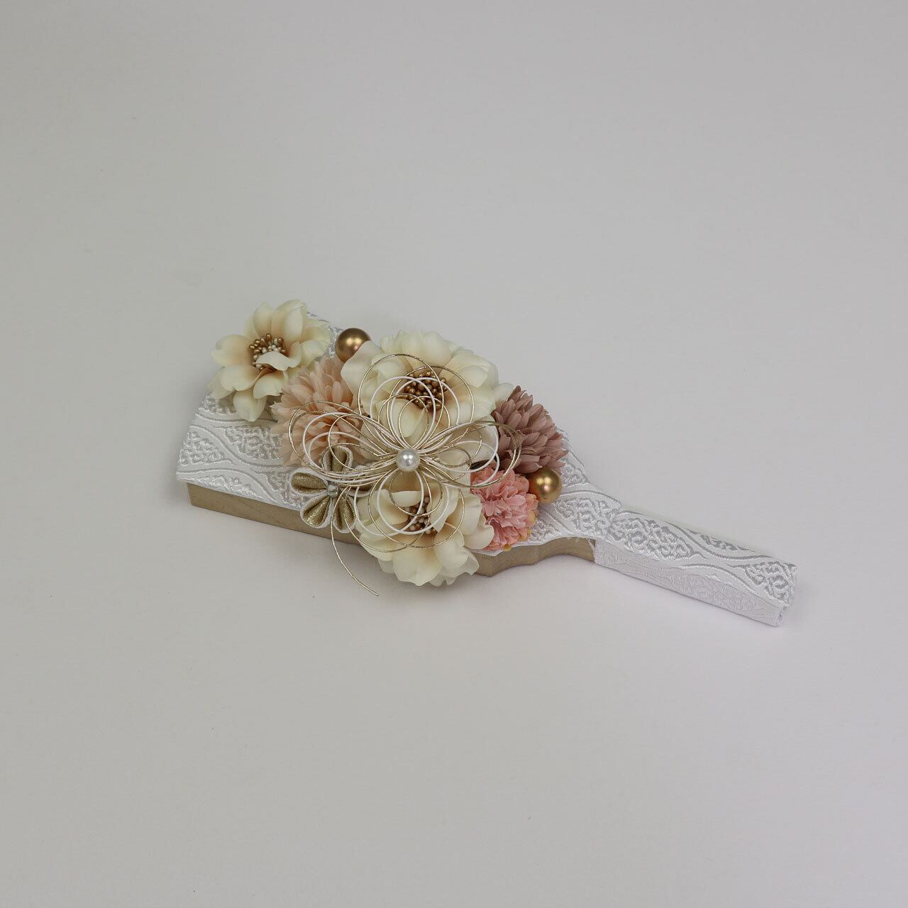コンパクトサイズのつまみ羽子板飾りで、置き型タイプ仕様となっております。(壁掛には対応していません)