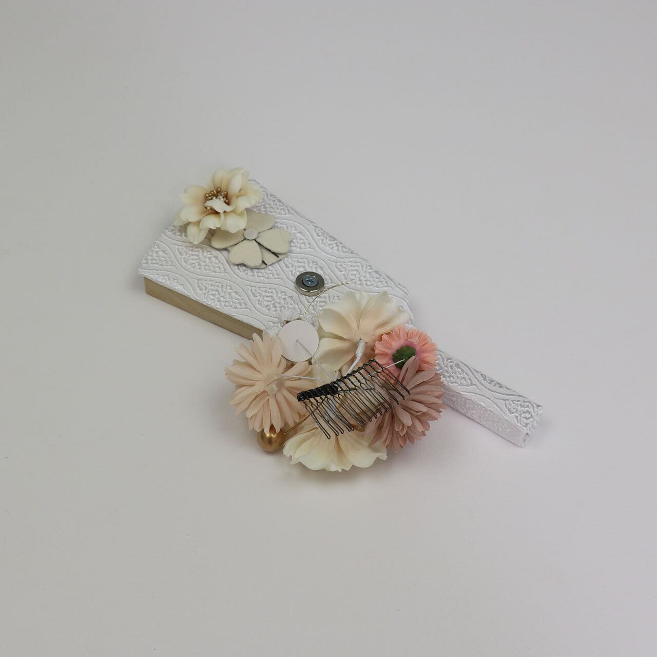 ホワイトを基調にした新感覚な色合いで、白色のお花をあしらったデザインが特徴です。