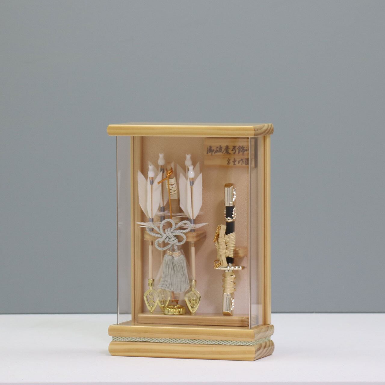 【健】 破魔弓飾り アクリルケース飾り 破魔弓|四本矢|木製|和モダン|コンパクト