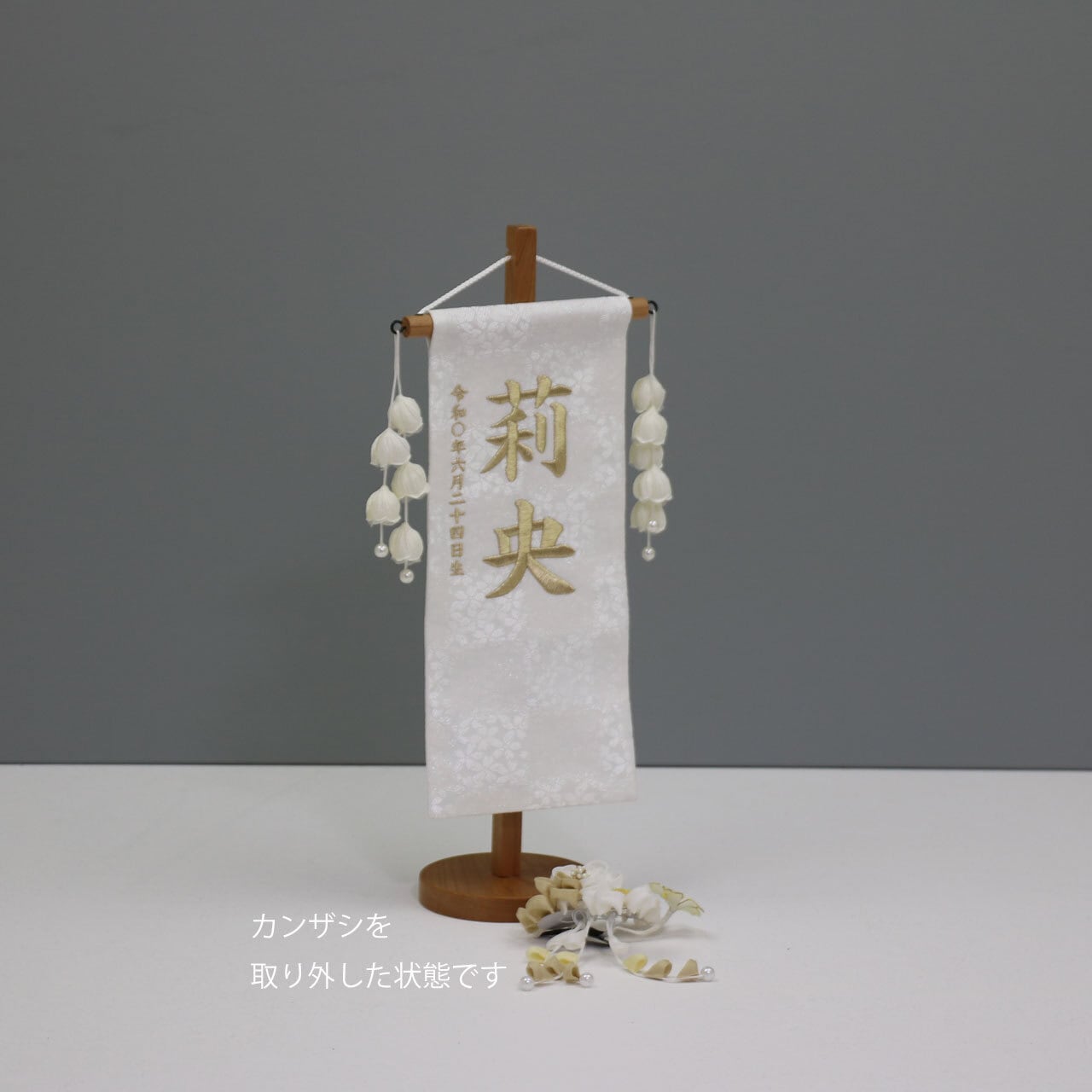 お名前旗 特織 【市松白 つぼみ 白色 小サイズ】 花柄|刺繍|女の子|ひな祭り|お名前入れ