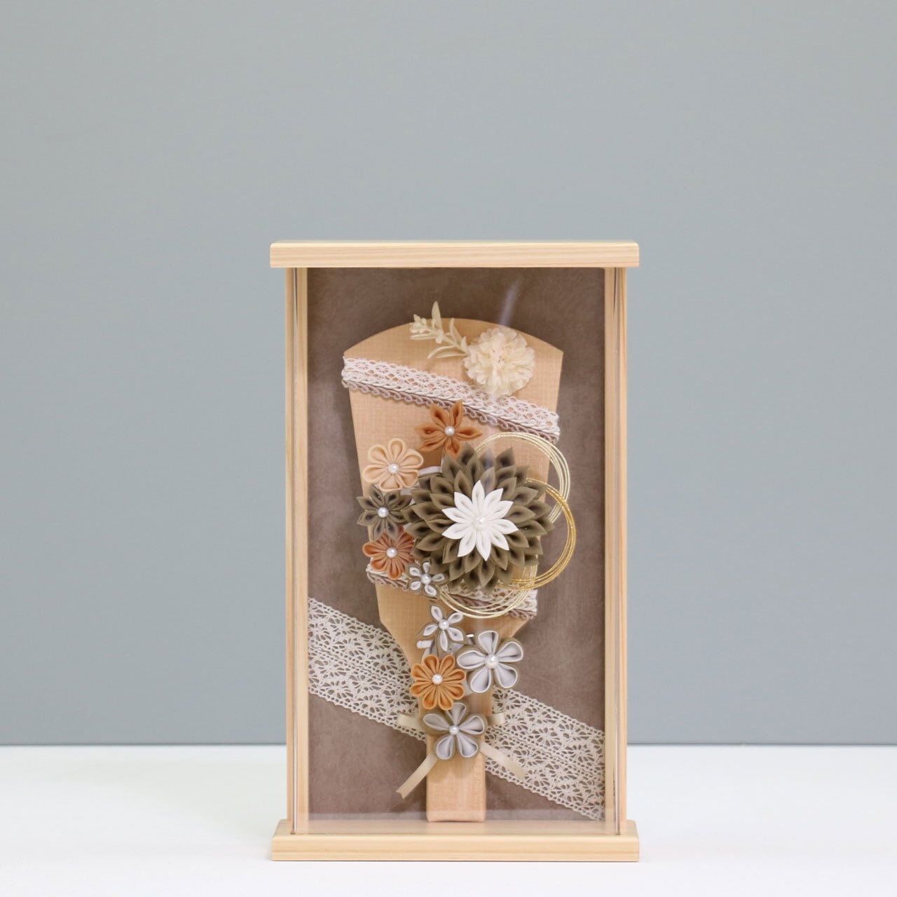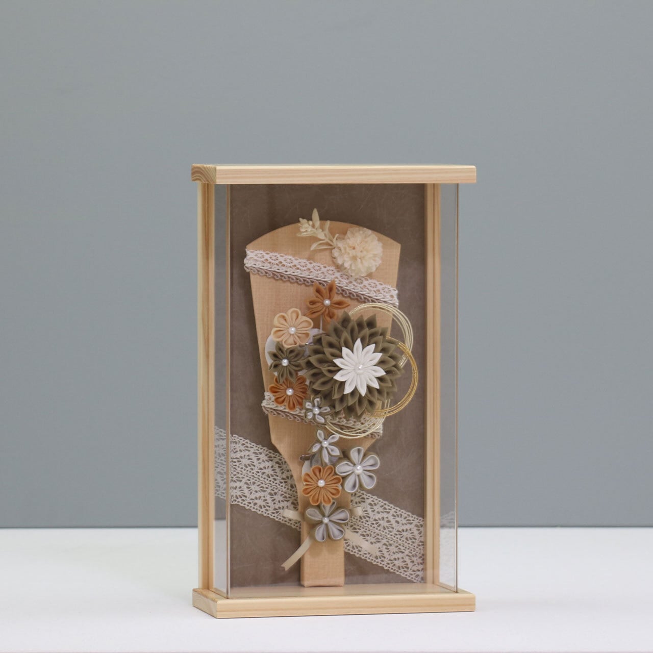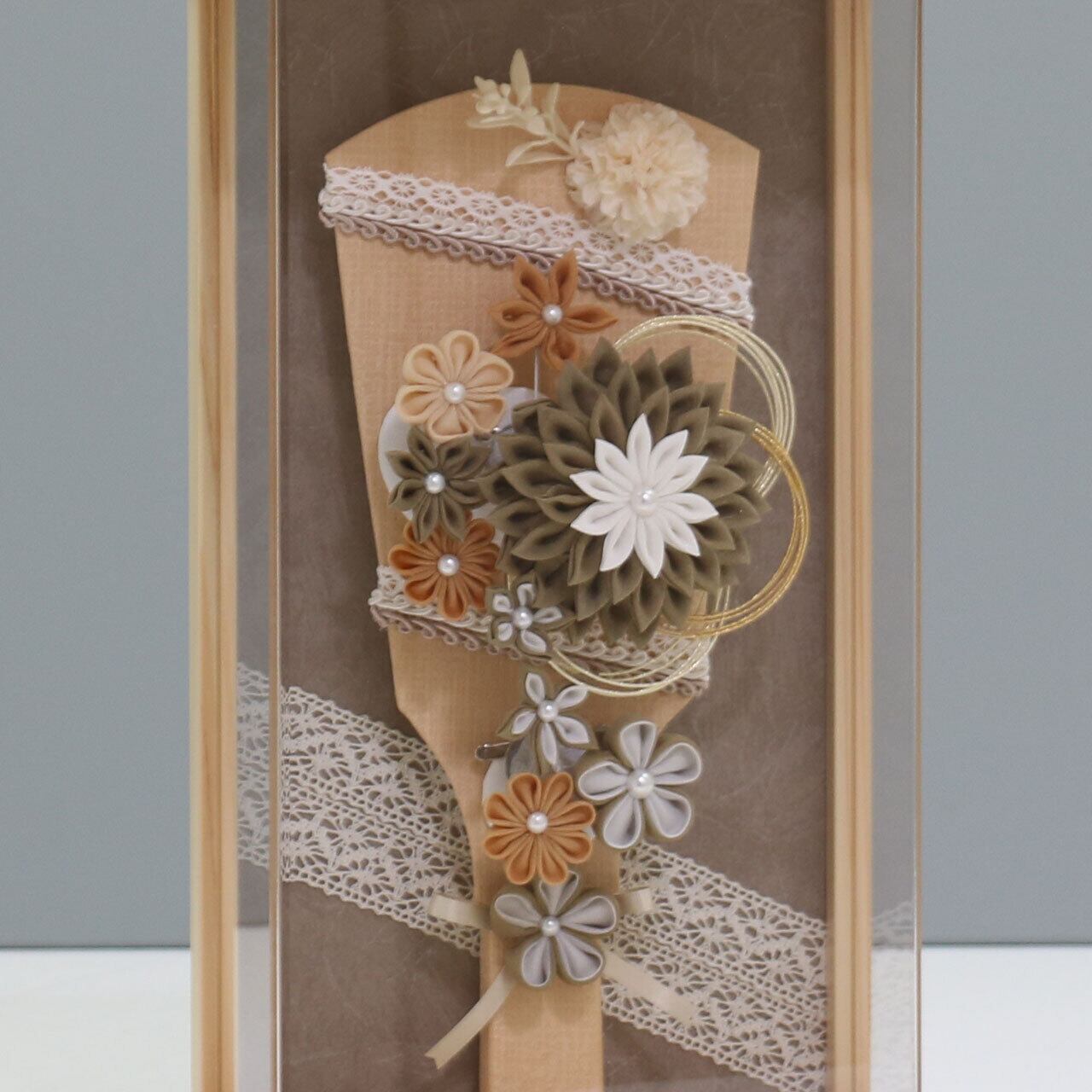【深緑 つまみ 羽子板 9号】 羽子板飾り アクリルケース飾り 羽子板|木製|和モダン|レース|コンパクト