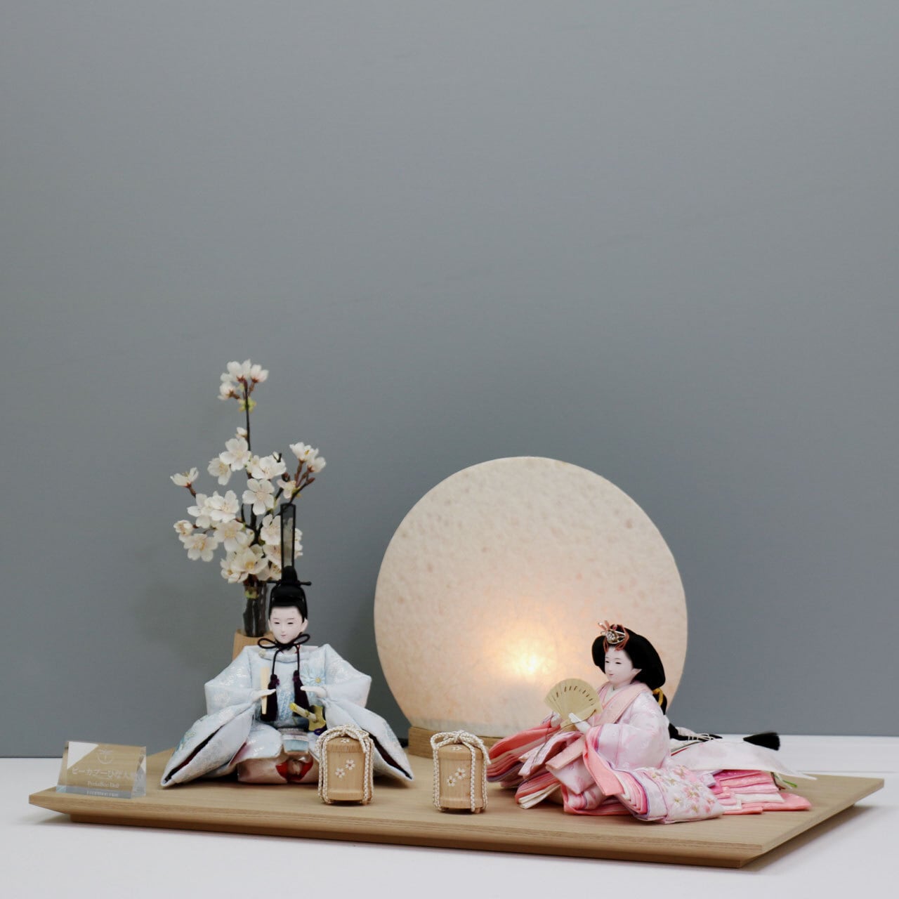 ピーカブーひな人形 ベーシックシリーズ 親王飾り 【ベビーブルー】 ひな人形|雛人形|桜|丸型照明|和モダン