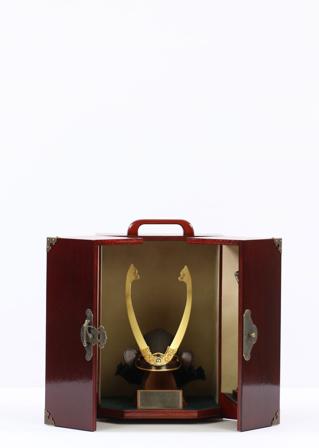 鈴甲子雄山 【Armadura 伍代セット 呂武 7号】 兜飾り 収納飾り 五月人形|木製|茶革|固定式|和モダン